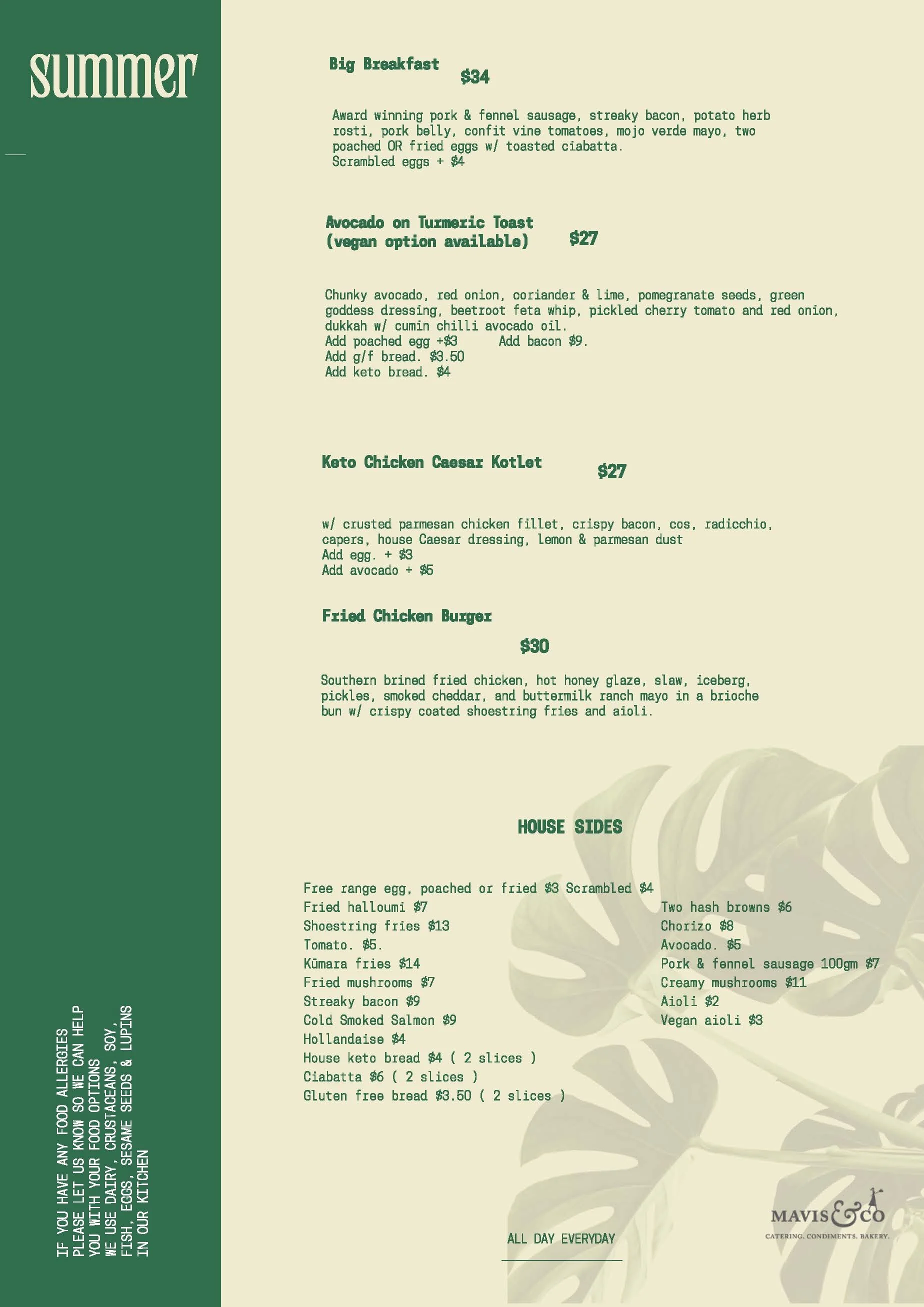 Mavis HAMILTON EAST menu
